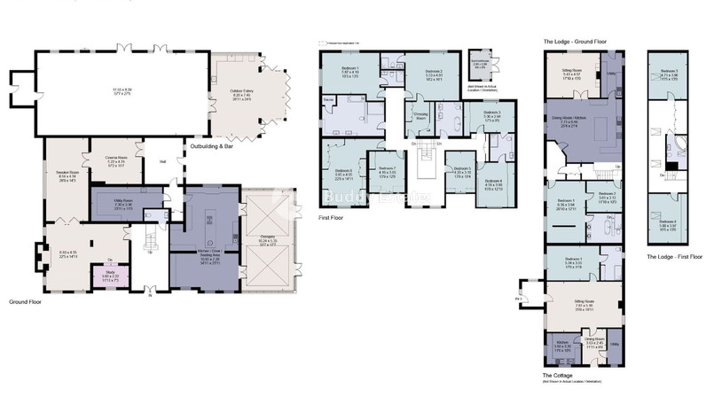 The guest bedrooms both have en-suite facilities. Bedroom 4 has built in wardrobes and shares a Jack and Jill bathroom with bedroom 7. Bedrooms 5 and 6 are served by a family bathroom off the main landing.